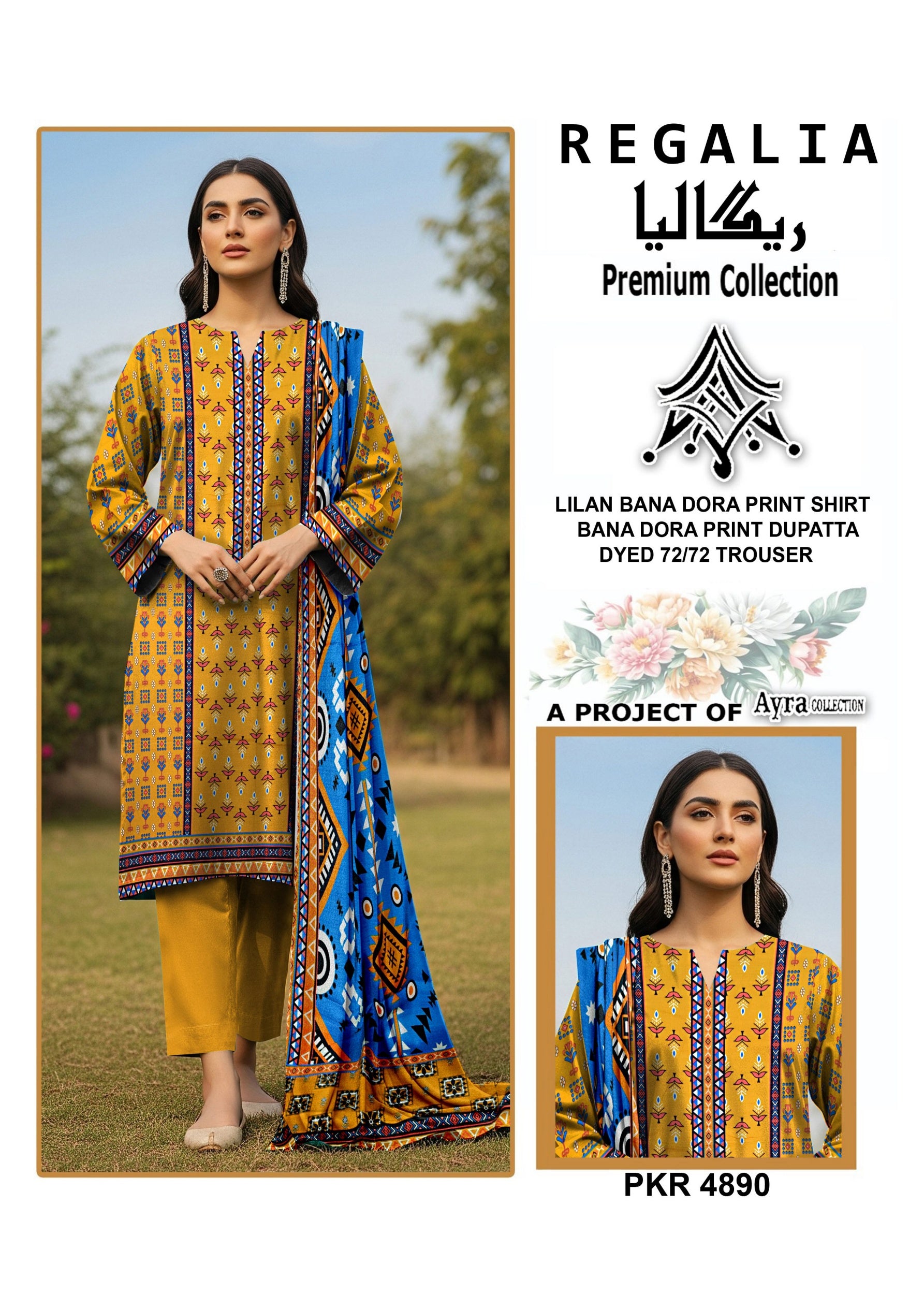 Premium Bana Dora linen shirt with matching dupatta. Elegant prints, available in multiple colors and designs.